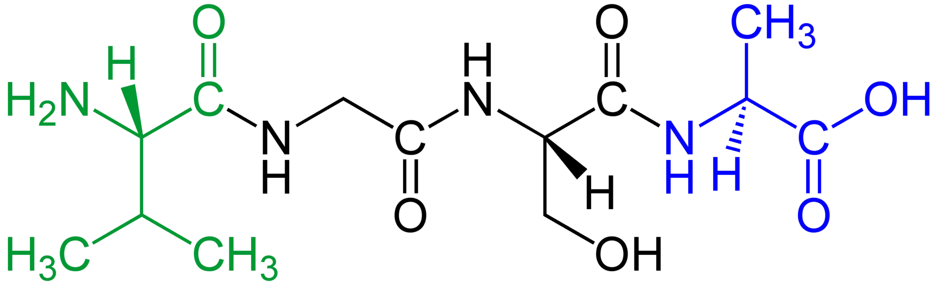 Aminosyror kan binda till varandra genom peptidbindningar, vilket är en bindning mellan den basiska och sura änden av aminosyrorna. Molekylen som bildas kallas för en peptid.