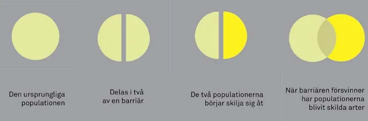 Det finns ytterligare mekanismer som leder till artbildning, men vi fokuserar på dessa två. Det viktiga är att någon form av barriär hindrar populationer från att para sig och dela genetiskt material.
