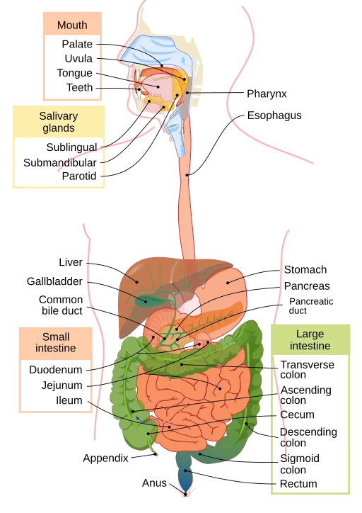 Det gastro-intestinala systemet består av flertalet organ som samarbetar för att både bryta ned maten, ta upp näringen och göra sig av med restavfallet.