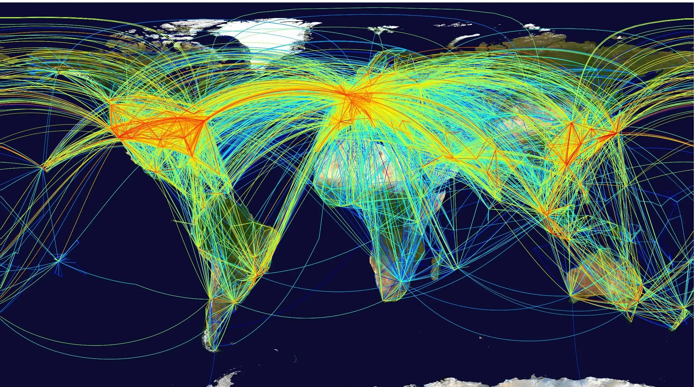 I dagens globala samhälle sprids sjukdomar snabbt. Bilden ovan visar människors förbindelser över jorden.